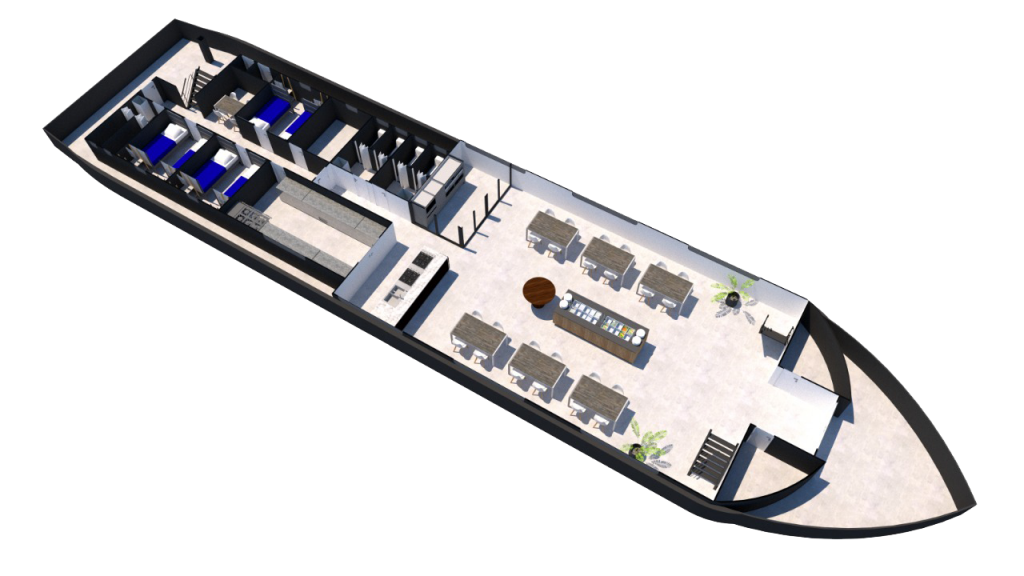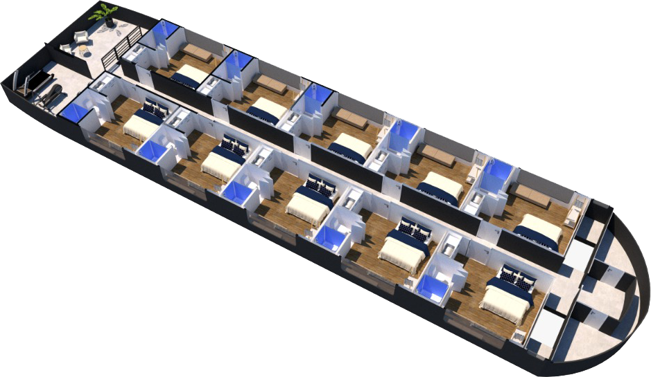 Conheça um pouco mais sobre a experiência de estar a bordo do Peralta! São 10 suítes com design único, que oferecem a melhor vista. Todas as suítes podem comportar camas de solteiro, casal ou beliche, com cofre, ar condicionado, banheiro privado, água tratada e frigobar. Contamos, também, para o seu maior conforto, com uma academia a bordo, restaurante panorâmico, bar e lounge, piscina, transfers dos aeroportos, tours de lancha e guia turístico.